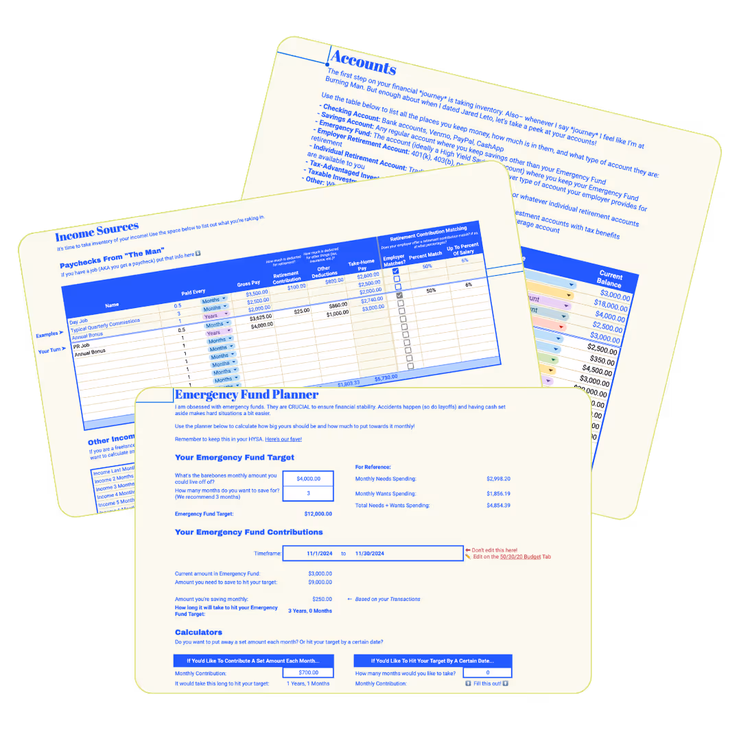 + Emergency fund calculator, debt payoff planner, and progress tracker.